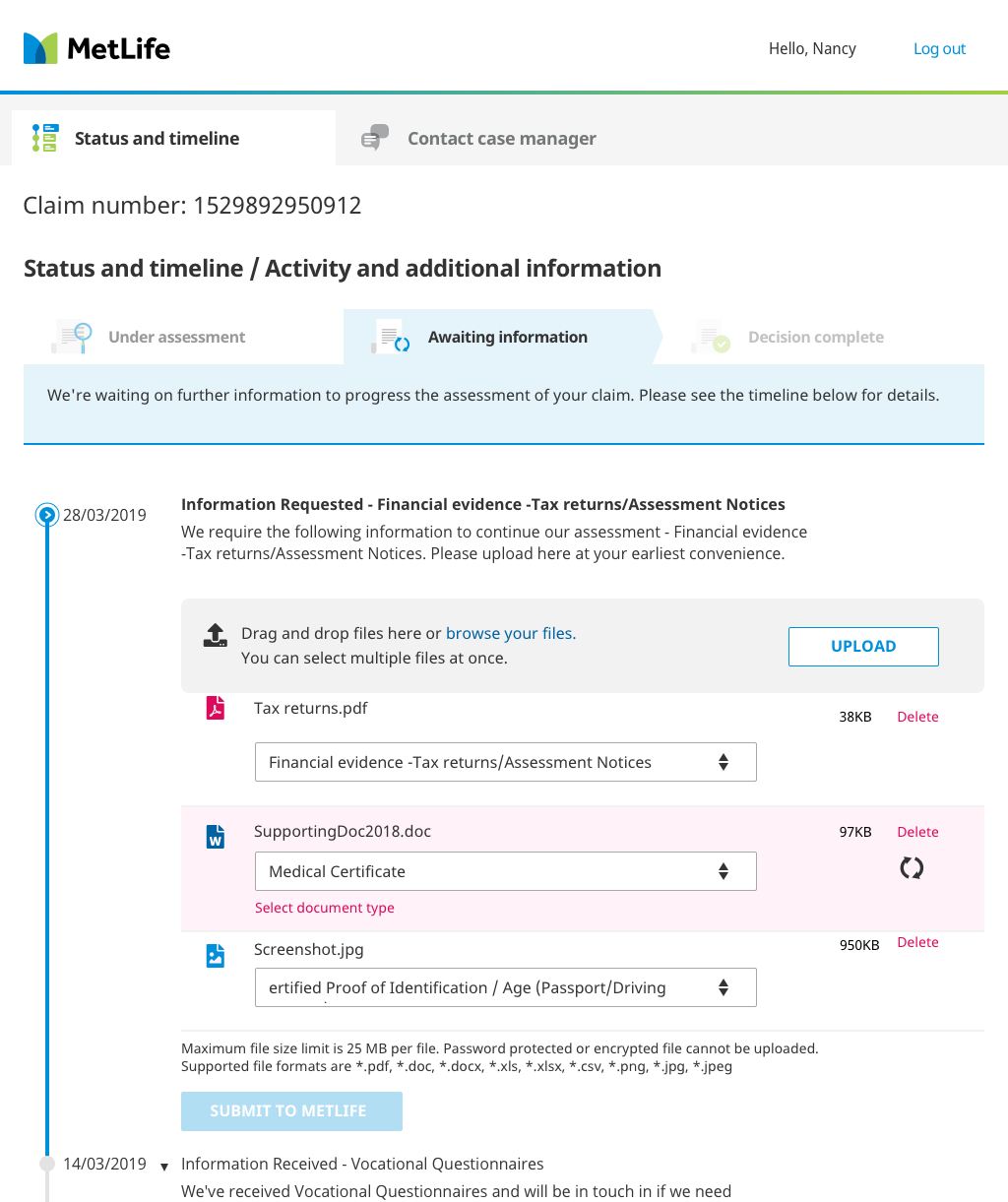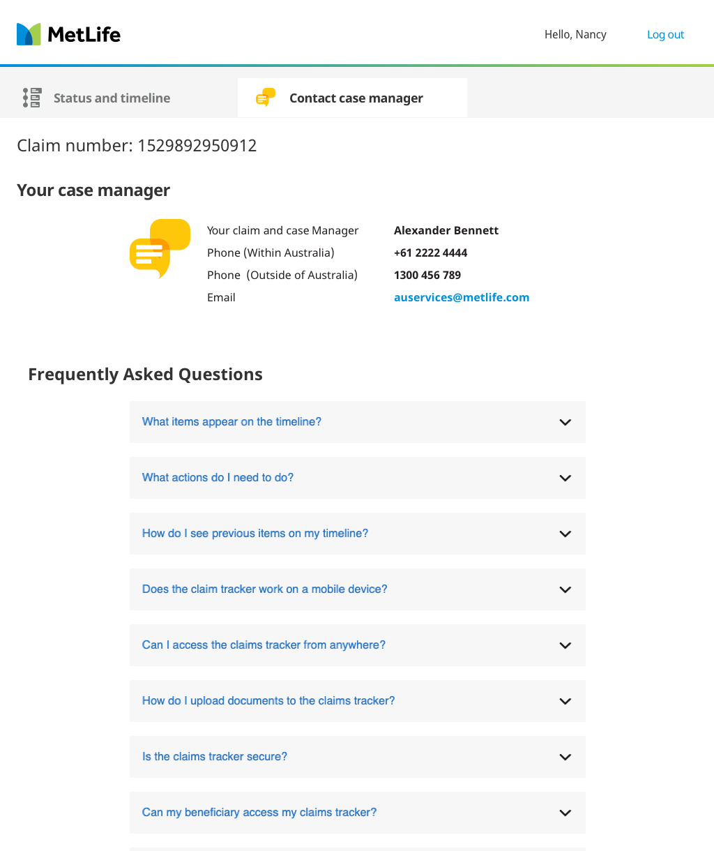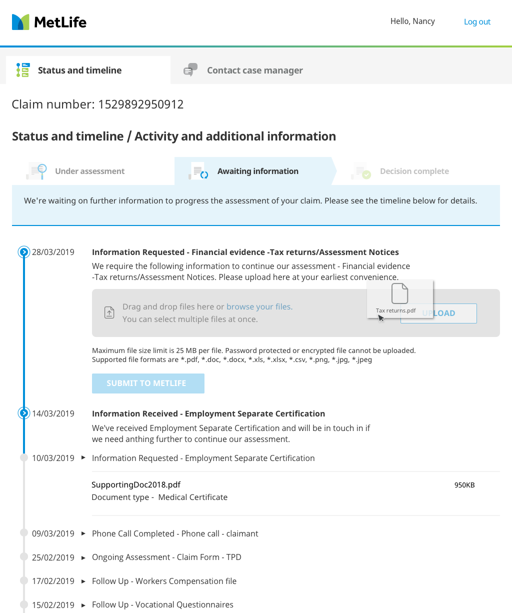 Tracking the status of insurance claims for individual customers