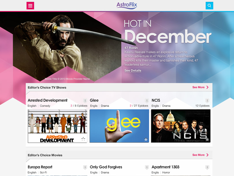 I left the position after all the main design and experience decision had been made, and hand-held device app was released. TV app is coming and should look welcoming and immersive experience. Creating the atmosphere of excellent lean back experiences for a moment of audience's life. Large images are vibrant, and there are more than a half million images are all curated and made by in-house designers. I was responsible for production art direction work and manage designers in Kuala Lumpur, Malaysia.
